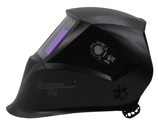 Przyłbica Sherman - profi V4 ma możliwość regulacji stopnia zaciemnienia od 4 do 13 wg DIN. Posiada zewnętrzne pokrętło, które umożliwia płynną regulację czułości reakcji fotoczujników na intensywność łuku podczas spawania metodami MIG lub TIG a także trójpozycyjną regulację czasu opóźnienia przełączania stanu ciemny/jasny i zmianę trybu pracy.