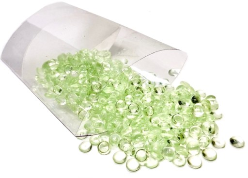Kamyki są malutkie i połyskliwe idealne np. do dekoracji stołów, akwariów, szklanych pojemników oraz do tworzenia kompozycji kwiatowych np. na imprezy okolicznościowe.