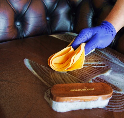 - Środek czyszczący aplikować w postaci piany na lekko zwilżoną szczoteczkę do skór Colourlock.