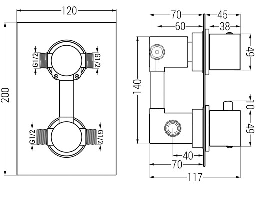 - Podłączenie: 2x wejście 1/2" oraz 2x wyjście 1/2"