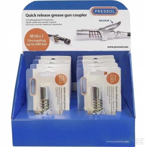 Zestaw - samoblokująca końcówka smarownicy niemieckiej firmy Pressol plus zestaw smarowniczek 70 szt. KRAMP.