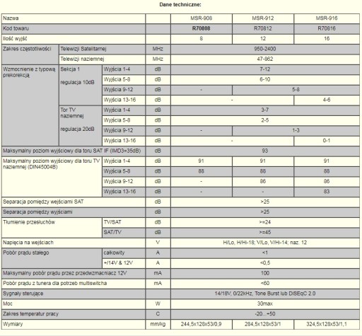 Urządzenie znanej firmy Terra, która specjalizuje się w produkcji profesjonalnych multiswitchy, dla potrzeb instalacji zbiorowych. Znakomite wykonanie, stabilność parametrów, bardzo niska awaryjność, sprawiają że multiswitche Terry można polecić nawet najbardziej wybrednemu klientowi. Multiswitch współpracuje ze wszystkimi platformami Cyfrowymi (POLSAT, CYFRA+, N)