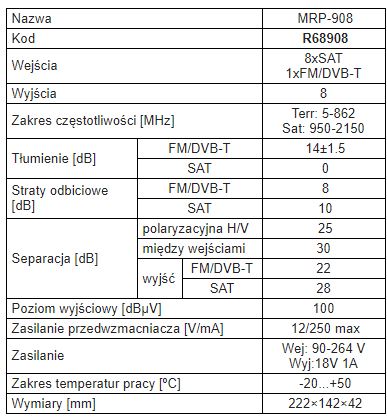 - oraz multiswitche 5-cio wejściowe: 5-cio, 8-mio, 12-sto oraz 16-sto wyjściowe.