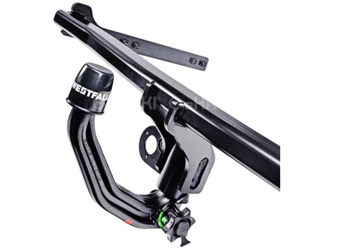Najwyższej jakości hak holowniczy Westfalia z kulą wypinaną pionową, zamykaną na kluczyk.