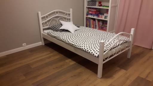 Rama łóżka wykonana jest z wytrzymałych profili metalowych, a także