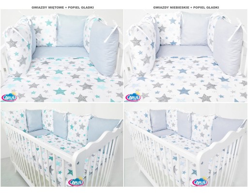 7-12. Ochraniacz modułowy składający się z 6 poduszek – wymiar każdej poduszki to ok 38x35 cm, poduszki uszyte są w dwóch wzorach , po 3szt z każdego wzoru składającego się na zestawienie poszewek. Wypełnienie stanowi mięciutka kulka silikonowa. Poduszki posiadają na każdym z brzegów wszyte troczki umożliwiające przymocowanie ich do łóżeczka w każdym miejscu. Taki model ochraniacz jest bardzo uniwersalny, poduszki zakładamy wg własnych potrzeb jak również wg własnego uznania kolorystycznego. Stanowią bardzo dobre zabezpieczenie dziecka przed uderzeniem o szczebelki łóżeczka. Poszycie stanowu 100% bawełna atestowana, najlepszej jakości dla maksymalnego komfortu snu dziecka.