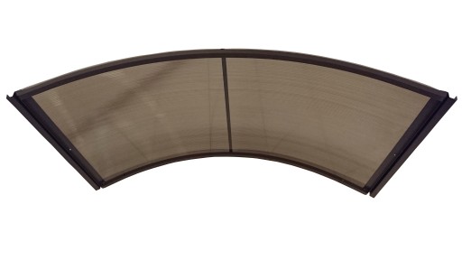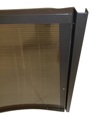 Daszek łukowy na poliwęglanie dymionym oraz stelażu brązowym o wymiarach 1,4m x 0,7m x 0,3 z rynienkami,daszek wykonany z profili aluminiowych 20x20.