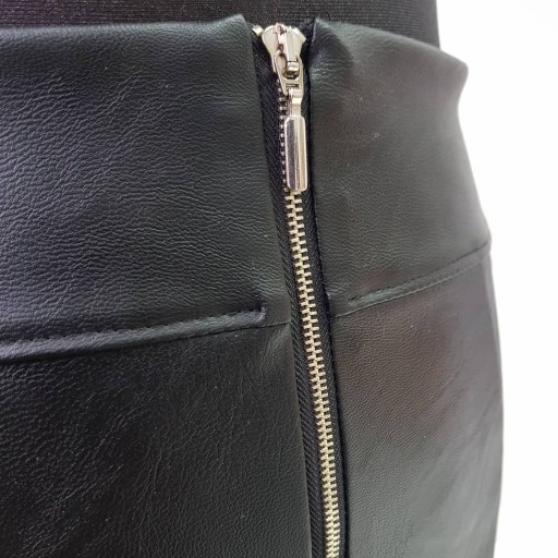 Spódnica uszyta z eko skóry - wysokogatunkowa tkanina, miękka i bardzo przyjemna w dotyku. Spodnia część tkaniny pełni funkcję podszewki.