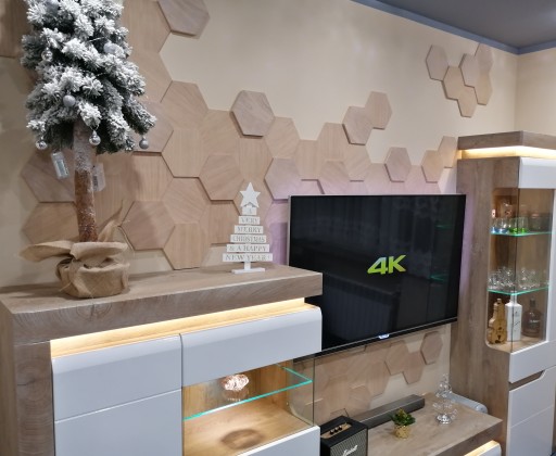 HEKSAGON Dąb Natura to naturalne panele w kształcie sześciokąta, będące wizytówką naszej firmy - nie bez powodu. Doskonale komponują się z każdym wnętrzem, przełamując ich surowy klimat lub nadając im przytulności i stylu. Nowoczesne, ścienne panele 3D to nowość w aranżacji wnętrz, która szybko zyskała dużą popularność wśród osób wykańczających swoją przestrzeń. Dekoracja w 100% wykonana z naturalnego drewna, idealna do bloku lub domu, salonu, restauracji, czy kuchni - bez żadnych ograniczeń. Świetnie sprawdza się za telewizorem lub w małej łazience. Heksagon dąb daje Ci nieskończone możliwości aranżacyjne - to Ty decydujesz o układzie, rozmiarze paneli i wielkości dekoracji dostosowując wszystko do swojej wizji, a dodatkowo zamontujesz ją bez zbędnego bałaganu i narzędzi.