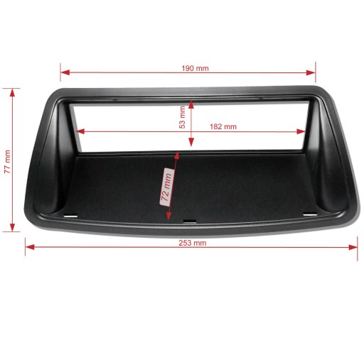 Prosimy przed zakupem sprawdzić, czy otwór po starym fabrycznym radiu odpowiada kształtem pokazanej na zdjęciu ramce.