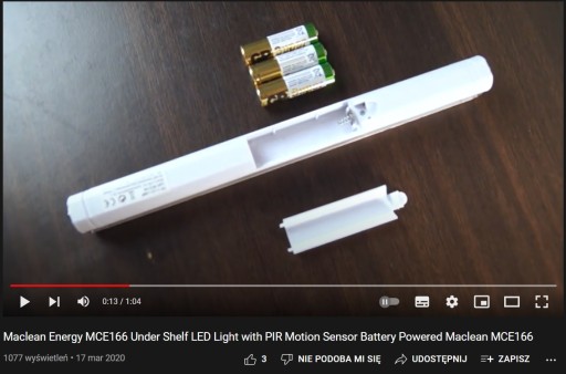 LAMPKA KUCHENNA PODSZAFKOWA 9 LED CZUJNIK RUCHU MACLEAN MCE166 DO SZAFY