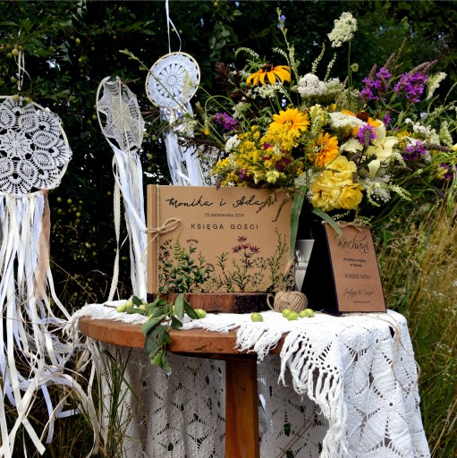 - rustykalną księgę gości weselnych