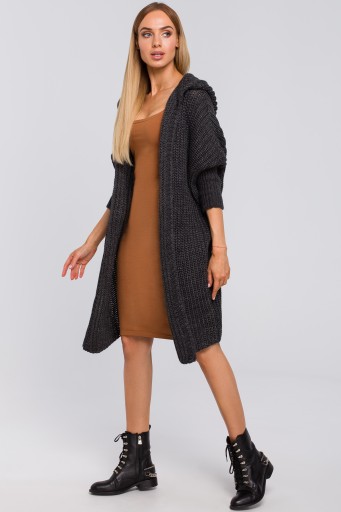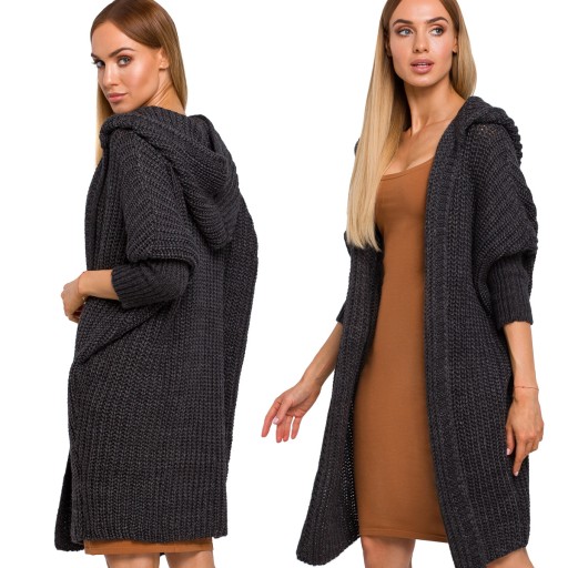 ЖЕНСКИЙ КАРДИГАН С КАПЮШОНОМ UNISIZE ДЛИННЫЙ ГРАФИТОВЫЙ UNI