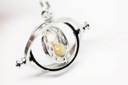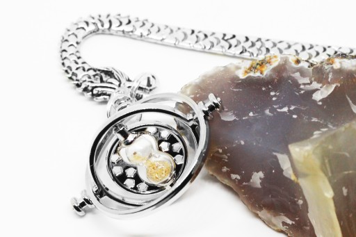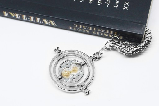 Elegancka zakładka do książki z zawieszką w kształcie zmieniacza czasu Hermiony.