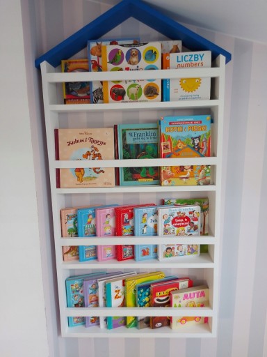 NA SPRZEDAŻ MAM WISZĄCĄ PÓŁKĘ NA KSIĄŻKI W KSZTAŁCIE DOMKU . PÓŁKA ZOSTAŁA WYKONANA RĘCZNIE Z LITEGO DREWNA SOSNOWEGO I POMALOWANA FARBĄ EKOLOGICZNĄ. MOZLIWOSC DOROBIENIA PŁYTY TYLNEJ KOSZT TO 50 ZŁ. POSIADA LISTWĘ MONTAŻOWĄ Z OTWORAMI O ŚREDNICY 8 MM NALEŻY KUPIĆ KÓŁKI ROZPOROWE ODPOWIEDNIE DO ŚCIANY NA KTÓREJ BĘDZIE ZAMONTOWANA PÓŁKA