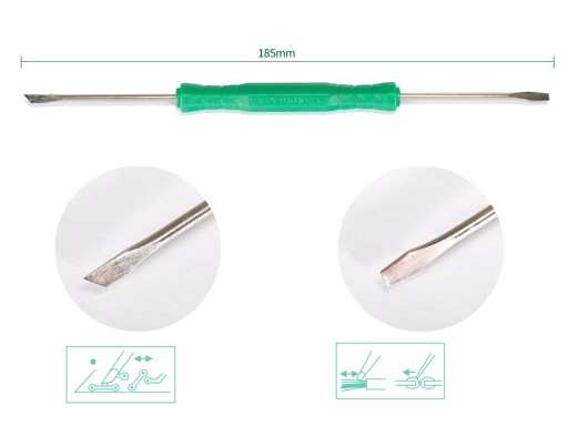 - Kształt płaskiego śrubokręta, długość całkowita:185mm