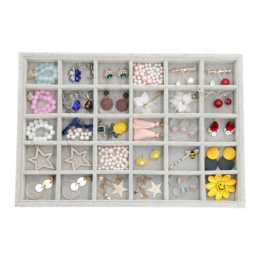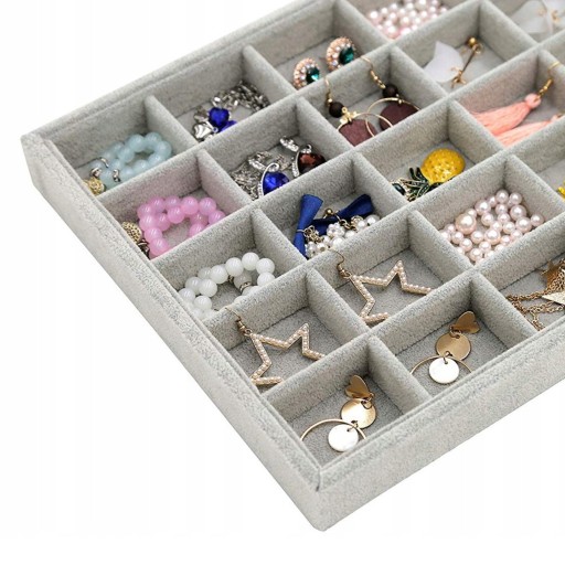 - 30 przegródek – Pozwala na wygodne przechowywanie pierścionków i kolczyków.