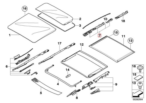 Oryginalny zestaw naprawczy mechanizmu dachu panoramicznego (części tylnej), dedykowany do: