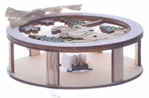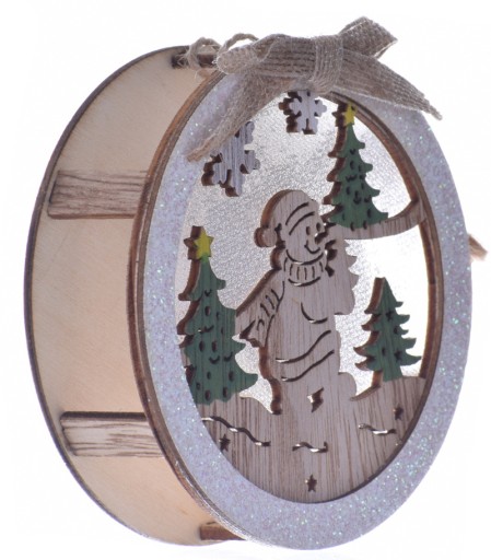Ta oryginalna dekoracja przyciąga wzrok i jest wspaniałą ozdobą świątecznego okna, dekoracji stołu czy niepowtarzalną bombką na choince. Wbudowana dioda LED emituje ciepłe światło tworząc przyjemną, przytulną atmosferę. Dzięki zasilaniu na baterie bez problemu można ją przenosić w dowolne miejsce można postawić na półce, regale a także zawiesić w oknie, drzwiach itp