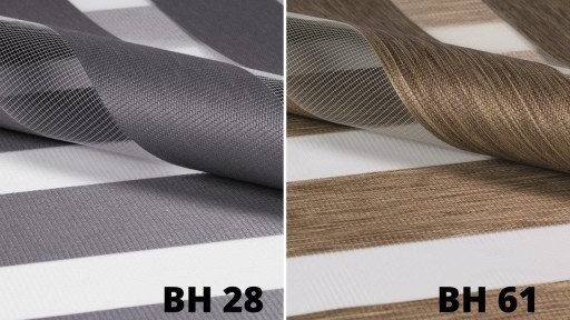 Tkanina typu Dzień-Noc cechuje się niewątpliwie łatwością regulacji stopnia nasłonecznienia pomieszczenia. Dzięki zastosowaniu tkaniny o dwóch stopniach przepuszczalności, płynnie możemy regulować transparentnością bez konieczności całkowitego rozwijania rolety lub jej zwijania.