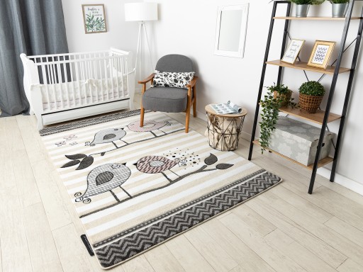 DYWAN DLA DZIECI 140x190 PTASZKI KRÓLIK RÓŻ SZARY