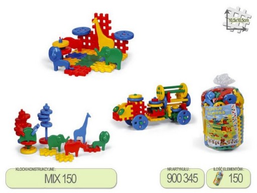 Klocki Waflowe duży zestaw 150 elementów mix