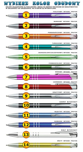 Grawer w długopisach Błyszczących w zależności od koloru obudowy wychodzi - dla koloru: