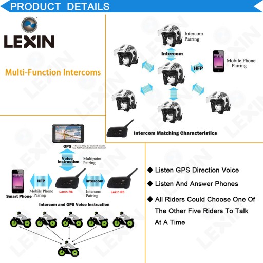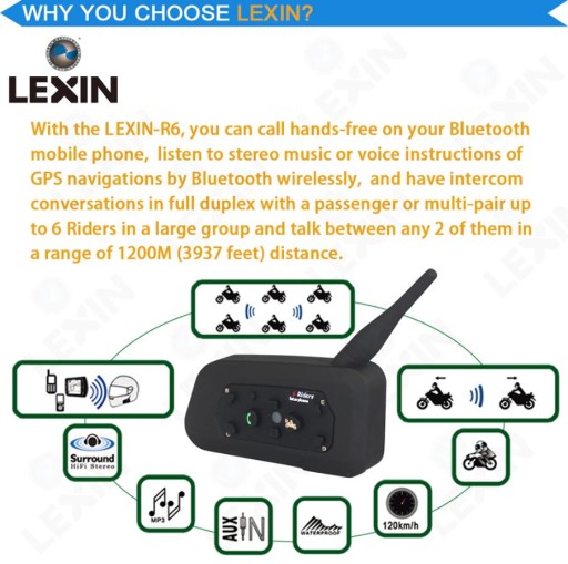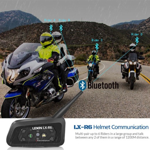 - LX-R6 to stereofoniczny bezprzewodowy zestaw słuchawkowy z pełnym dupleksem przeznaczony do montażu w najbardziej otwartych kaskach i w pełnoklatkowych kaskach motocyklowych. Ten zestaw słuchawkowy jest odpowiedni dla dużych grup do 6 zawodników o zasięgu 1200 metrów.