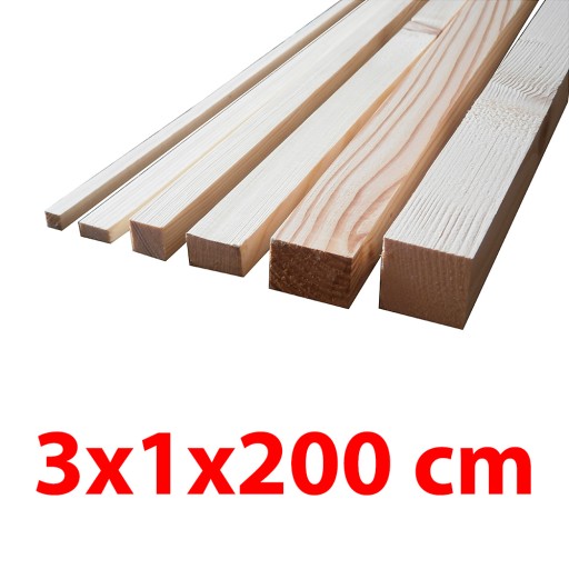 - Kantówka strugana: 3 cm x 1 cm x 200 cm