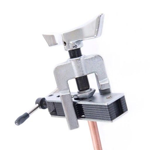 Rura miedziana blokowana jest w uchwycie poprzez zaciśnięcie na niej pakietu stalowych płytek. Następnie przez obrót trzpienia z utwardzonej stali wykonywany jest kielich .