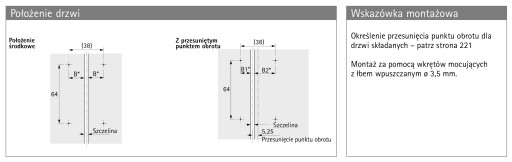 Zawias specjalny, środkowy z zatrzaskiem do drzwi składanych, kąt otwarcia 180°, do zaczepiania