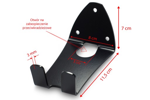 Uchwyt do pedału wykonany jest z blachy stalowej o grubości 3 mm, dodatkowo posiada otwór na zabezpieczenie przeciwkradzieżowe np. linkę, łańcuch...