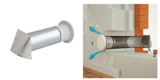 Od strony wnętrza budynku nawietrzak wyposażony jest w anemostat, posiadający warstwę izolacji, która zapobiega tworzeniu się skroplin w okresie zimowym i tłumi hałas, a także pozwala na precyzyjną regulację natężenia przepływu powietrza przez użytkownika.