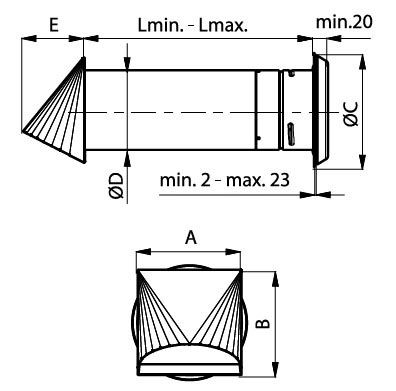 Każda wersja nawietrzaka wyposażona jest w czerpnię powietrza, która jest odpowiedzialna za pobór powietrza z zewnątrz. Jej konstrukcja zabezpiecza przed dostawaniem się do środka opadów atmosferycznych. W dodatku została wyposażona w siatkę chroniącą przed owadami.