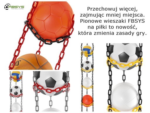 Jeśli masz wiele piłek w domu i nie wiesz jak je ułożyć, gdzie je schować a na dodatek cały czas plątają się pod nogami to wieszak FBSYS z pewnością rozwiąże ten problem. Od tej pory Twoje piłki będą w jednym miejscu dzięki pionowemu wieszakowi FBSYS.