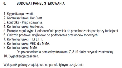 Instrukcja obsługi w języku polskim całej spawarki i wszystkich funkcji