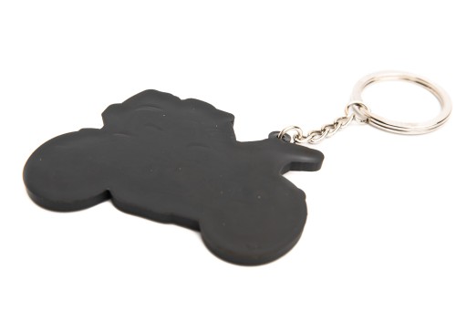 Breloczek wykonany z gumy, dzięki czemu nie rysuje elementów motocykla, z którymi się styka.
