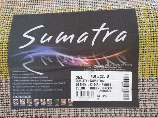Dywany Sumatra są bardzo elastyczne i charakteryzują się wysoką jakością wykonania. Są łatwe w utrzymaniu czystości i przyjemne w odkurzaniu, posiadają właściwości antyelektrostatyczne, są odporne na wilgoć, ugniatanie i ścieranie.