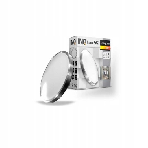 Plafoniera wyposażona w dwie oprawki E27 przeznaczone dla źródeł światła o mocy nieprzekraczającej 60W. Mleczny klosz wykonany z tworzywa wraz ze srebrną obramówką czyni oprawę atrakcyjną wizualnie i uniwersalną w zastosowaniu do różnych wystrojów wnętrza.