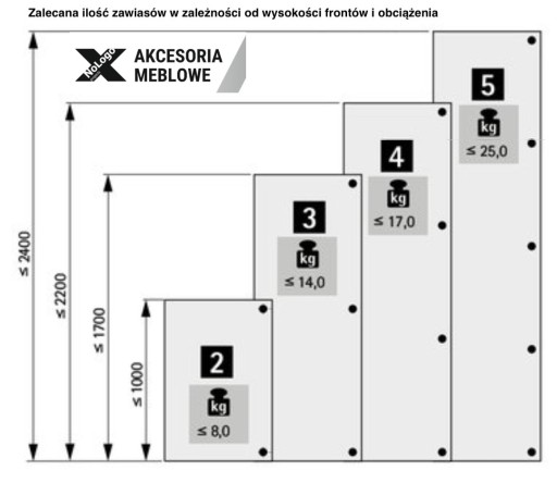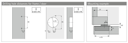 - nakładka drzwiowa co najmniej 37 mm(ramię zawiasu równo z krawędzią ramy)