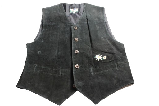 Kamizelka, zapinana na guziki, wewnątrz podszewka, 2 kieszonki z tyłu materiał- używana stan dosyć dobry- normalne ślady użytkowania.