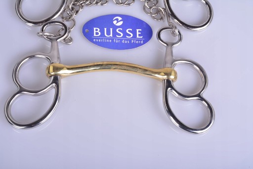 MUNSZTUK ZAPRZĘGOWY 10,5CM.NA KUCA. WYKONANY PRZEZ RENOMOWANO NIEMIECKA FIRMA BUSSE. MUNSZTUK WYKONANE Z WYSOKIEJ JAKOŚCI STALI NIERDZEWNEJ.KÓŁKA UMOŻLIWIAJĄ ZAPIĘCIE LEJCA NA RÓŻNEJ WYSOKOŚCI. ŚCIĘGIERZ POWLEKANY MIEDZIĄ KTÓRA ZACHĘCA KONIA DO ŻUCIA I UŁATWIA AKCEPTACJE WĘDZIDŁA .POLECAM