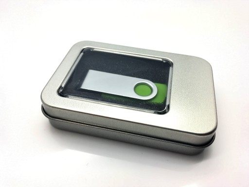 Metalowe pudełko z okienkiem pasuje do pendrive tzw. TWISTER, który mogą Państwo zakupić na innych naszych aukcjach.