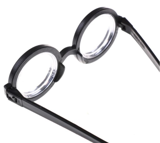 Okrągłe okulary z plastikową oprawką i grubymi szkłami. Atrybut seniora, kujona lub niedowidzącego. Idealne na wszelkiego rodzaju imprezy. Gwarancja udanych i na długo zapamiętanych chwil spędzonych w gronie bliskich znajomych oraz na fotkach.