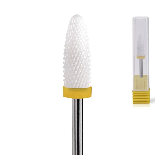 ⭐ Frez Ceramiczny X20 do Hybrydy Żelu Stożek Średni Żółto-Biały