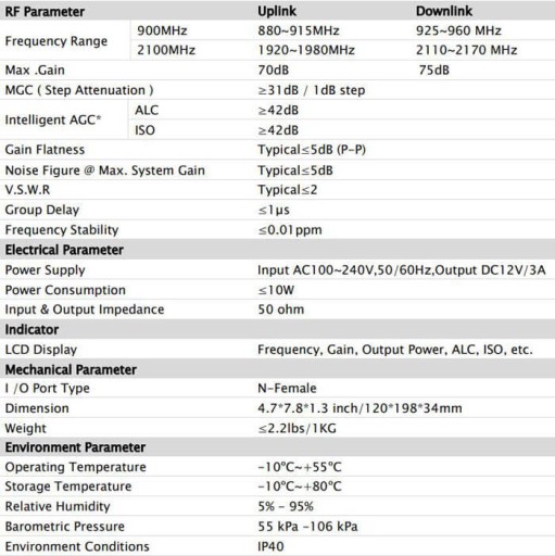 Urządzenie posiada wyświetlacz LCD z funkcją monitorowania stanu na żywo, co zapewnia bardzo łatwe użytkowanie. Dzięki inteligentnej funkcji AGC wzmacniacz automatycznie mierzy siłę sygnału wejściowego i dostosowuje najlepsze parametry systemu do warunków odbioru w danym obszarze. Automatyczna kontrola wzmocnienia ułatwia sterowanie mocą między nadajnikiem a wzmacniaczem, aby utrzymać zysk na optymalnym poziomie, ograniczyć szumy do zera i nie zakłócać innych pasm. * Pamiętaj, że powinieneś mieć co najmniej 2-3 kreski na odczycie sygnału poza domem, aby wzmacniacz zapewniał ogólne wzmocnienie sygnału. Zasięg urządzenia zależy również od grubości ścian i projektu budynku.