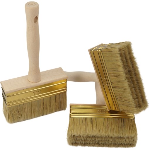 Pędzlezostały wykonane z wysokiej jakości szczeciny naturalnej, która zapewnia bardzo dobrą absorpcję farby, a przy tym lekkie oraz równomierne jej rozprowadzanie na malowanej powierzchni, niemalże nie zostawiając przy tym śladów po pędzlu. Malowanie jest wydajniejsze – częstotliwość maczania pędzla w farbie jest mniejsza.