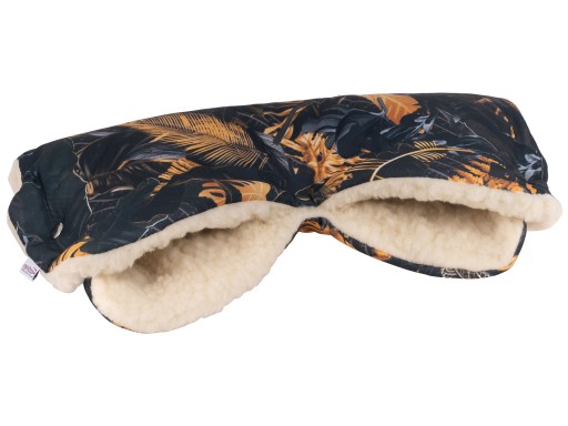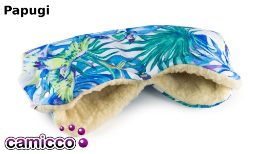 Mufka wykonana jest z nieprzemakalnego materiału wózkowego wypełniona grubą owatą, od środka wykończona przyjemną w dotyku wełną która zapewni ciepło podczas spacerów, pasująca do większości wózków oraz pchaczy do sanek