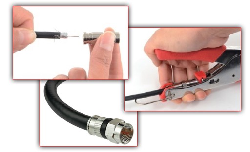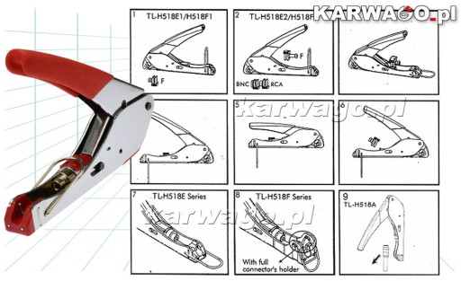 - średnice przewodów RG59, RG6; (nie nadaje się do zaciskania złącz na grubych kablach typu RG-11)