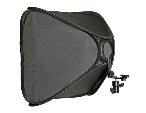 Softbox przeznaczony do lamp systemowych. W zestawie razem z uchwytem reporterskim i dyfuzorem, który zapewnia równomierne i miękkie oświetlenie.